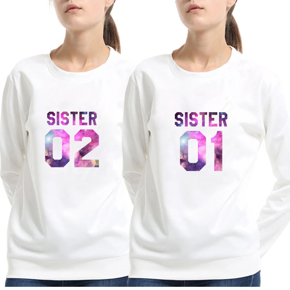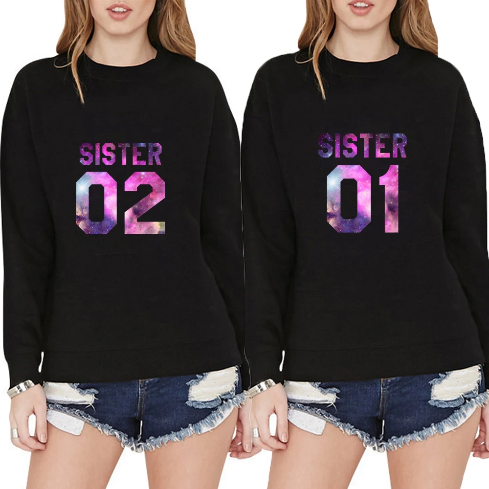 Special Offer Sister 01 02 Best Friends BFF Женская толстовка с буквенным принтом джемпер Повседневный Женский Забавный хипстер черный белый осенний пуловер Discount 37% Today!