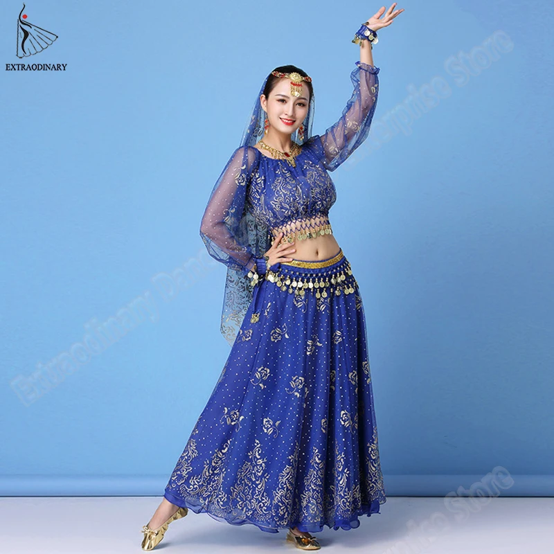 Special Offer Болливуд платье костюм женский набор индийский танец сари танец живота наряд Одежда для выступлений шифоновый топ + пояс + юбка Discount 37% Today!