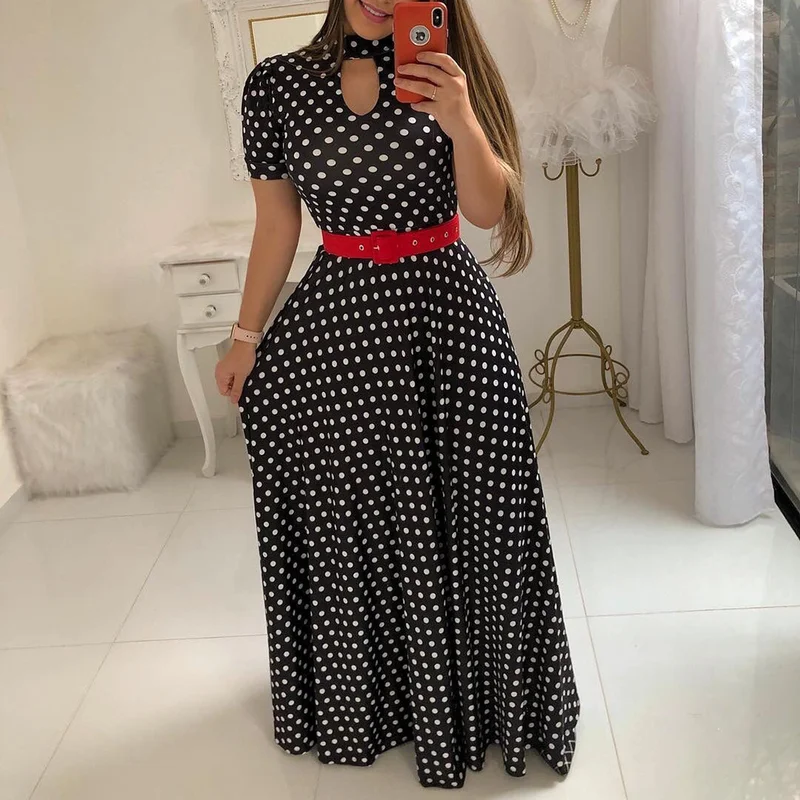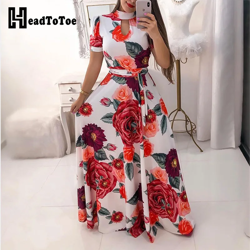 Product Name: Женское длинное платье с принтом Flroal, Элегантное летнее платье с коротким рукавом, Повседневное платье для работы