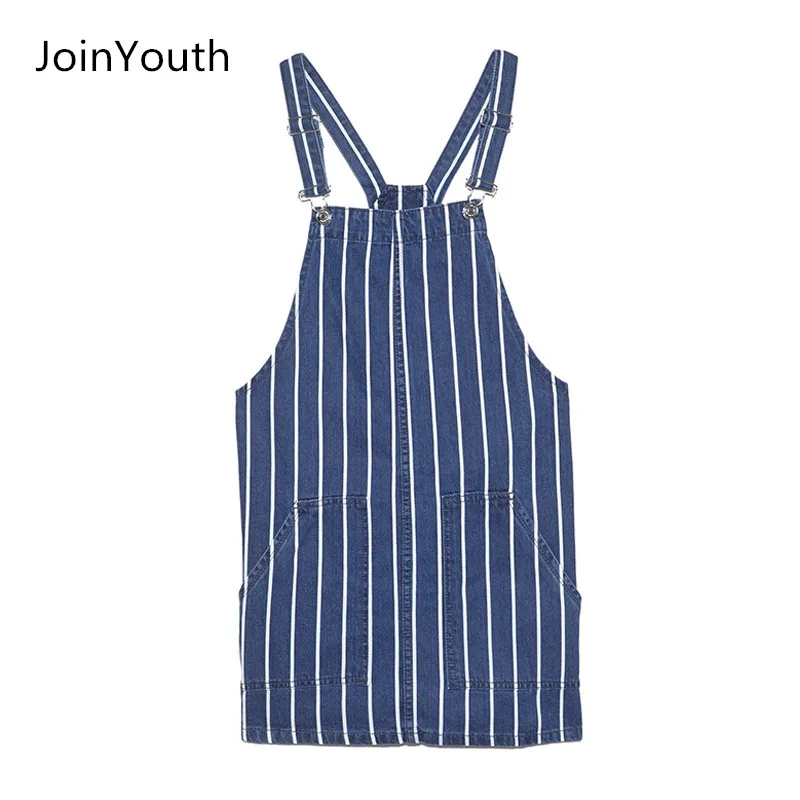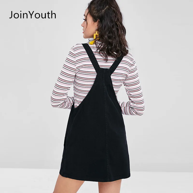Special Offer JoinYouth женское модное черное белое Полосатое джинсовое регулируемое платье с карманами на подтяжках осенние женские подтяжки Discount 40% Today!