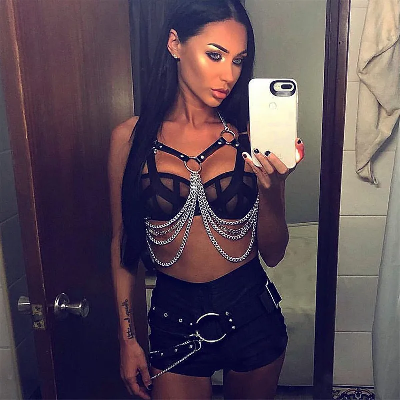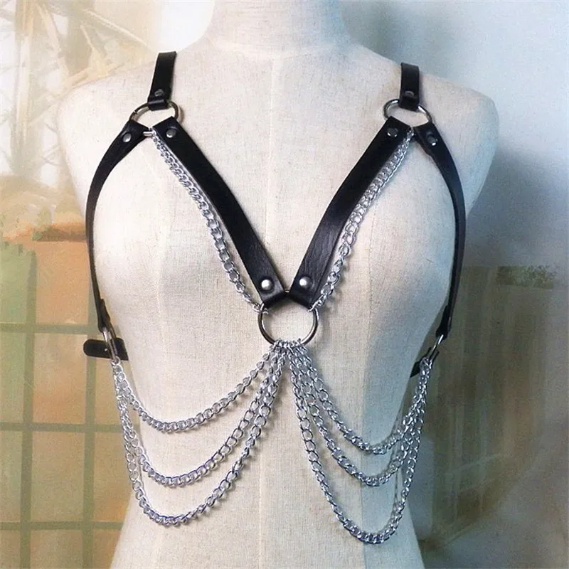 Product Name: Металлические цепи заклепки кожа грудь портупея ремни сексуальное нижнее белье для бондажа ремни женские регулируемые нагрудные ремни для...