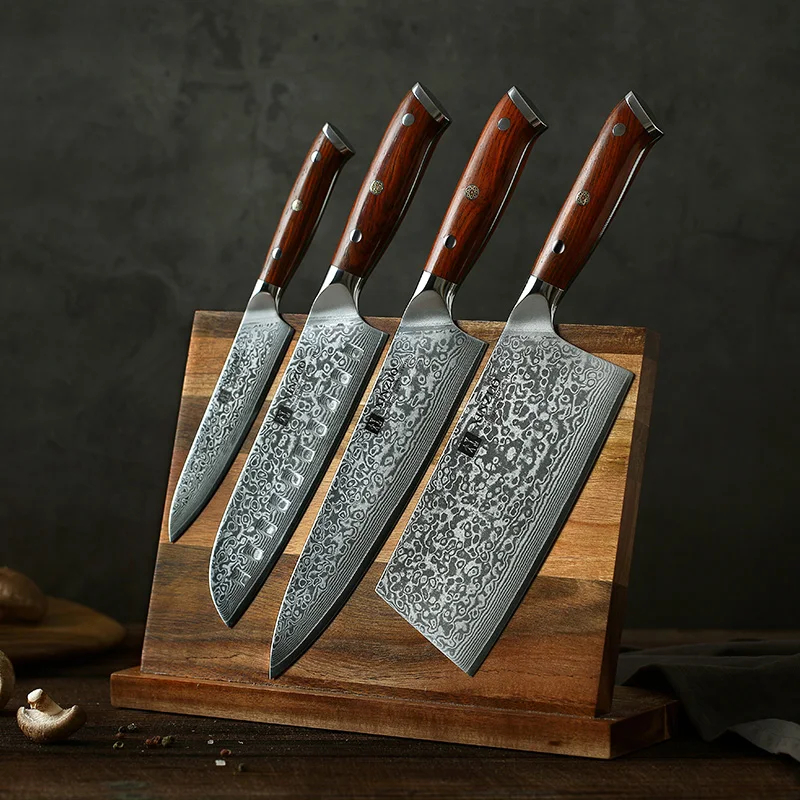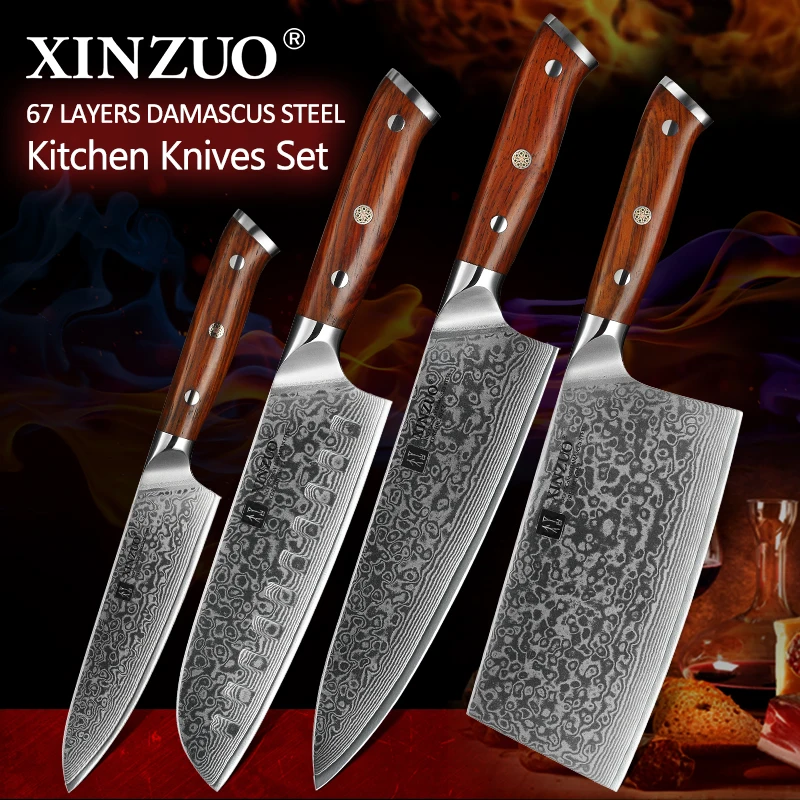 (41% Off) Купить XINZUO 4 шт. набор кухонных ножей VG10 Дамасская сталь большой Кливер шеф повара ножи из нержавеющей стали Santoku Мясник нож палисандр ручка Продажа Дешево