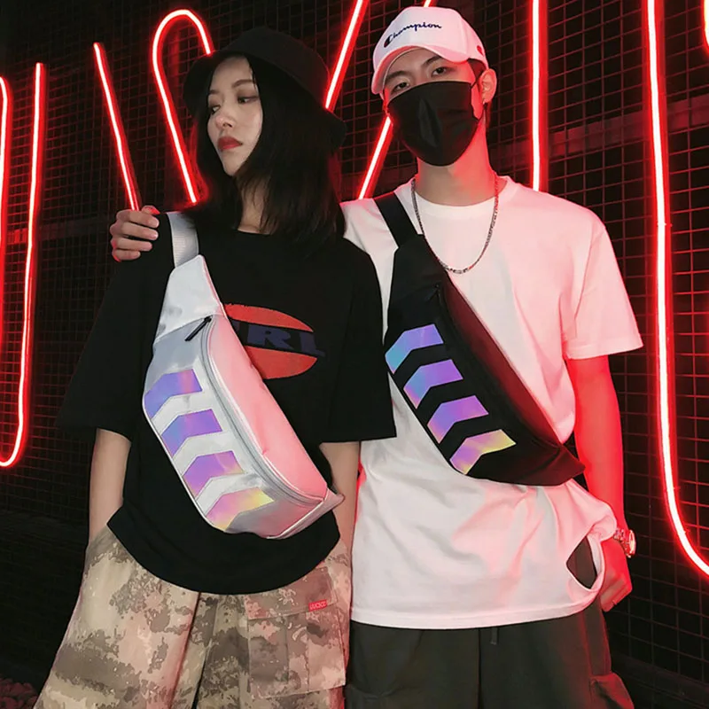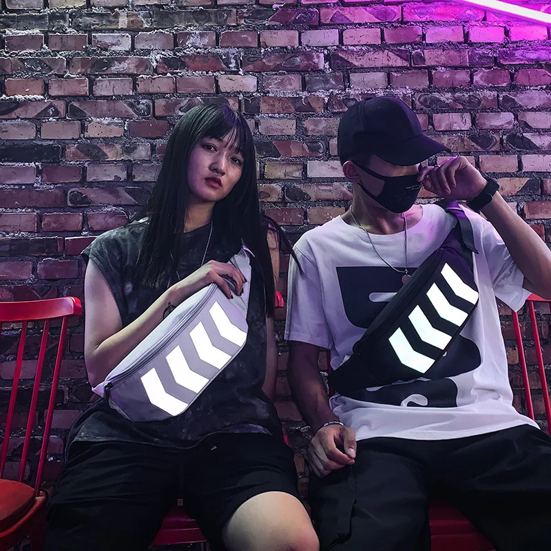 (42% Off) Купить Мужская и Женская поясная сумка, уличная холщовая нагрудная модная Светоотражающая сумка в стиле хип хо... Продажа Дешево