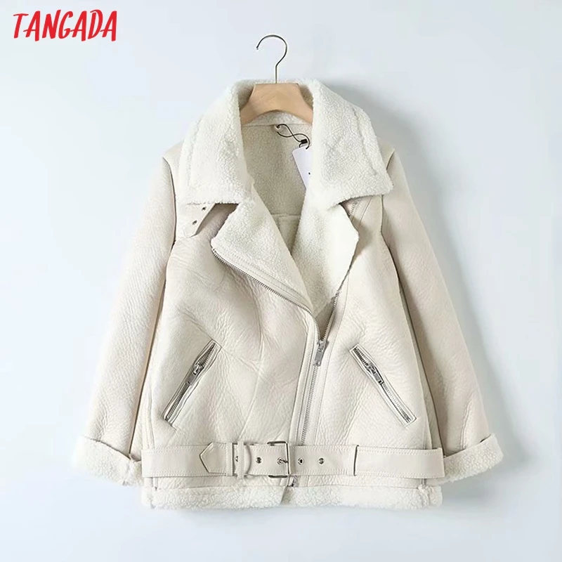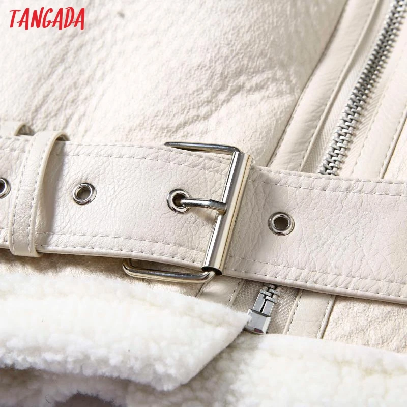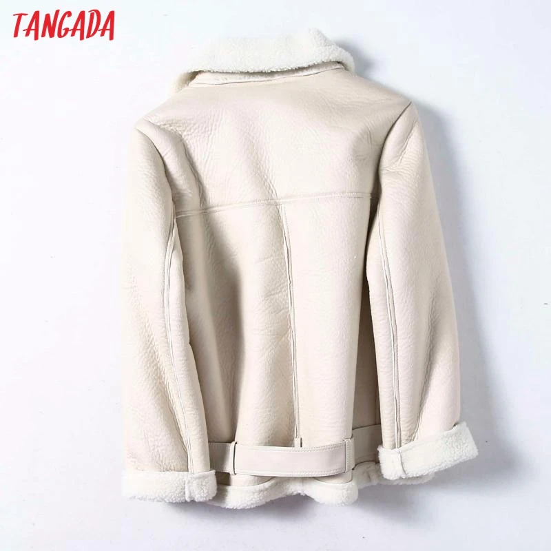 Special Offer Tangada, женская бежевая Меховая куртка из искусственной кожи, пальто с поясом, отложной воротник, для девушек, 2019, зимнее плотное теплое пальто ... Discount 44% Today!