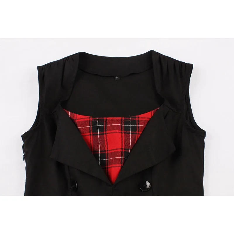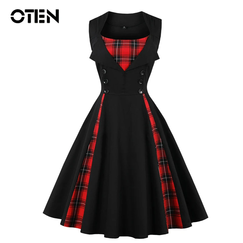 Product Name: Женское винтажное платье без рукавов OTEN, красное клетчатое платье с принтом на пуговицах и пуговицами для вечеринки, лето 2019