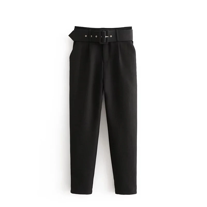 Product Name: Женская мода 5 цветов Длинные ZA прямые брюки осень 2019 женские хаки Высокая талия с поясом повседневные однотонные хлопковые брюки