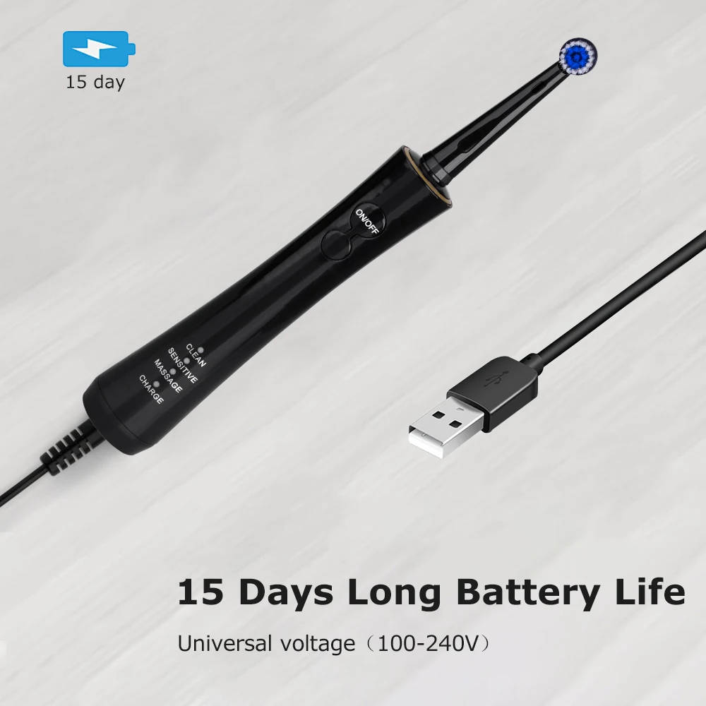 Product Name: Электрическая Зубная Щетка Вращающаяся Зубная Щетка Зарядка USB Зубная Щетка Путешествия Зубная Щетка Отбеливание Зубов для Взрослых Здоро...
