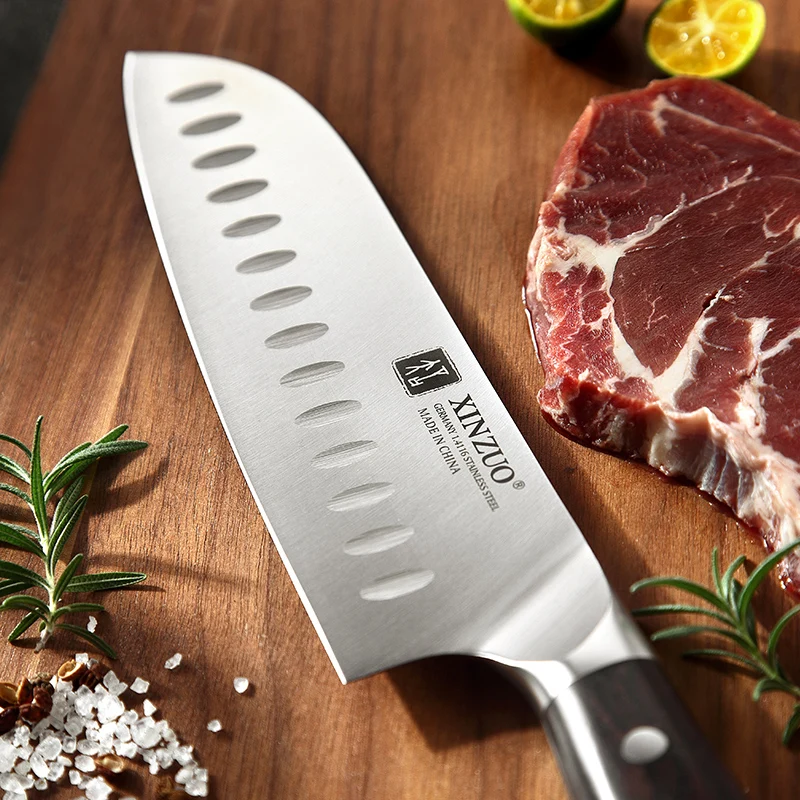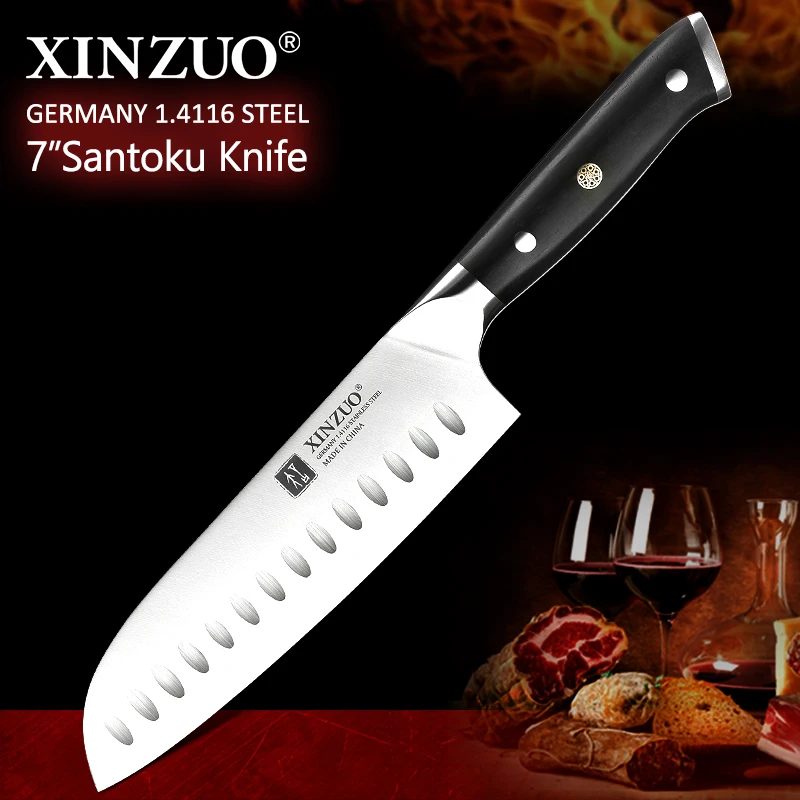 (51% Off) Купить XINZUO 7 дюймов нож сантоку DIN 1,4116 нержавеющая сталь немецкий кухонный супер острые Лучшие ножи с черной ручкой сувенирные Цена Дешево