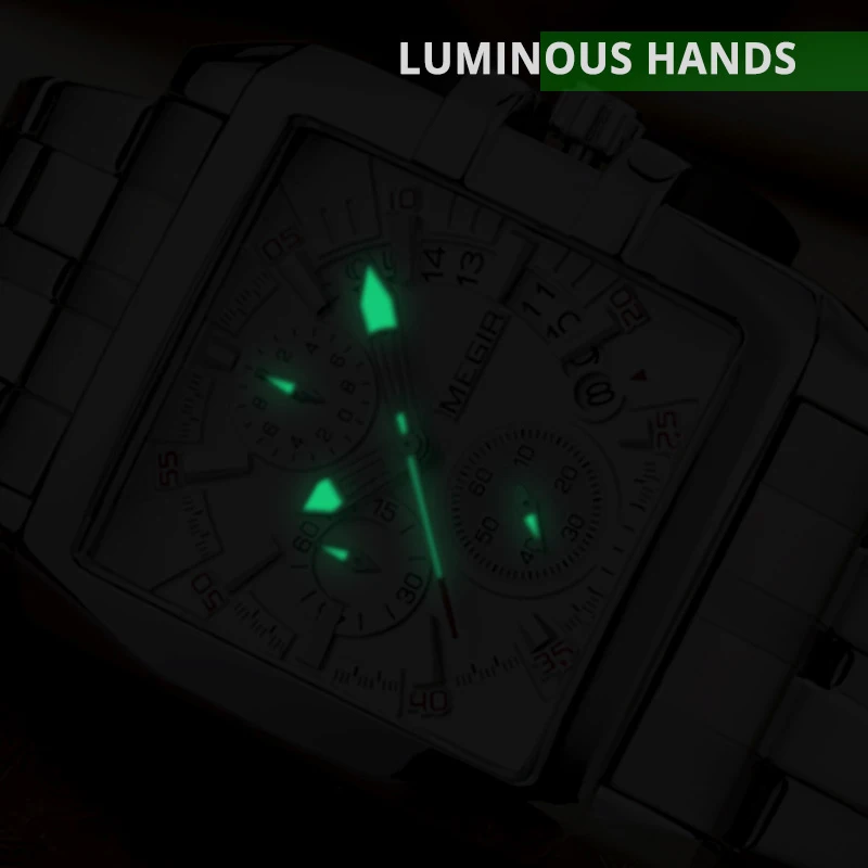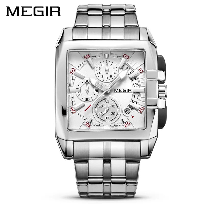 Product Name: MEGIR оригинальные Роскошные мужские часы из нержавеющей стали Мужские кварцевые наручные часы бизнес большой циферблат наручные часы Relogio ...