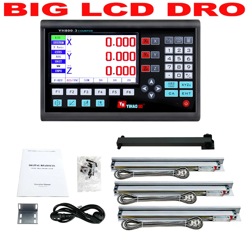Product Name: Полный комплект с 3 Осями Dro, большой ЖК дисплей, цифровой контроллер индикации с 3 шт. линейной линейкой 5U, линейная оптическая линейка от 50 д...