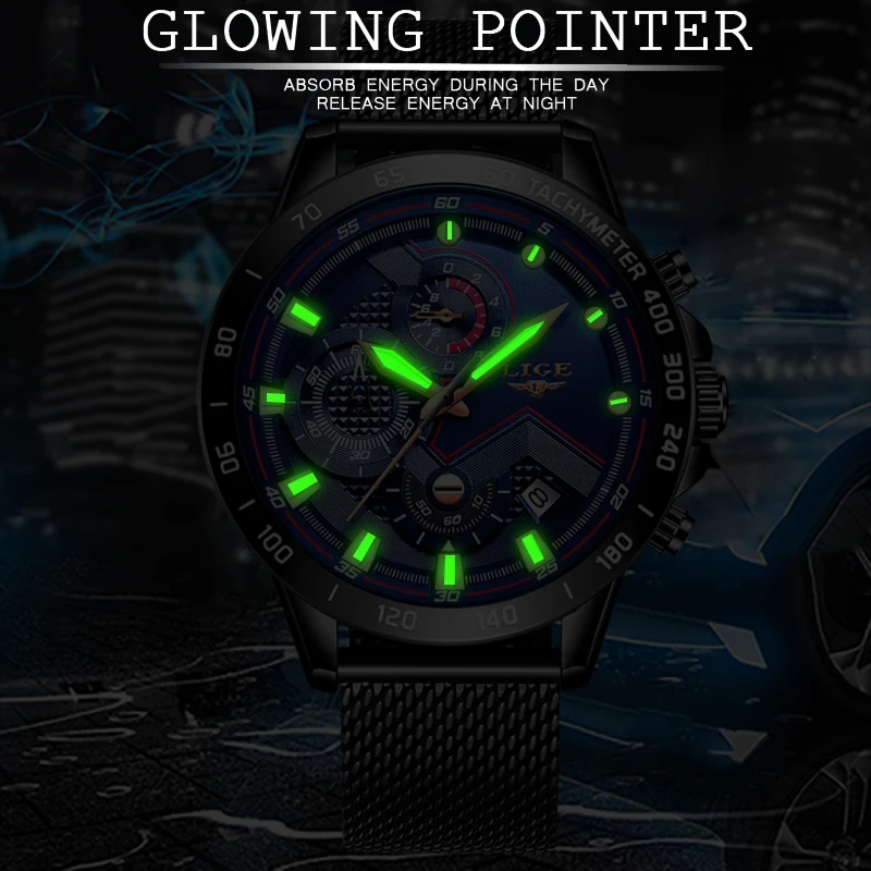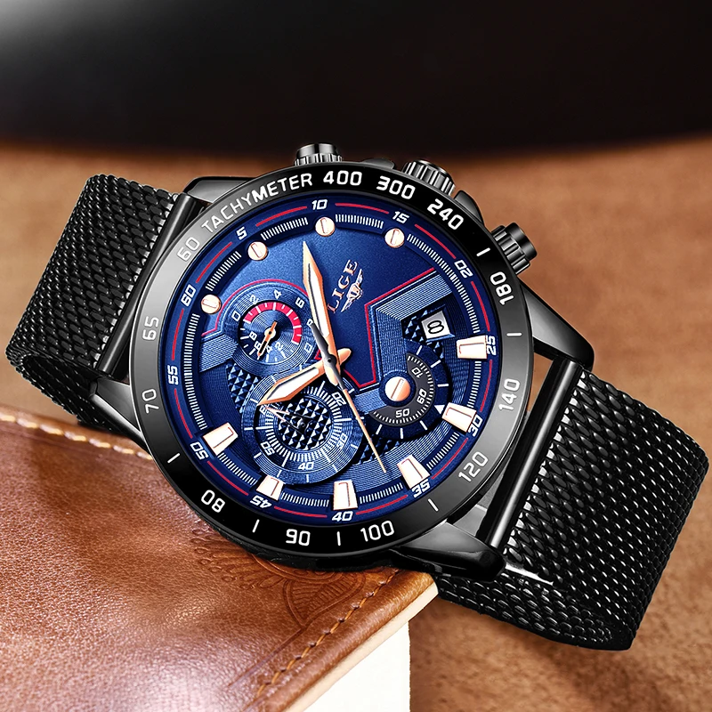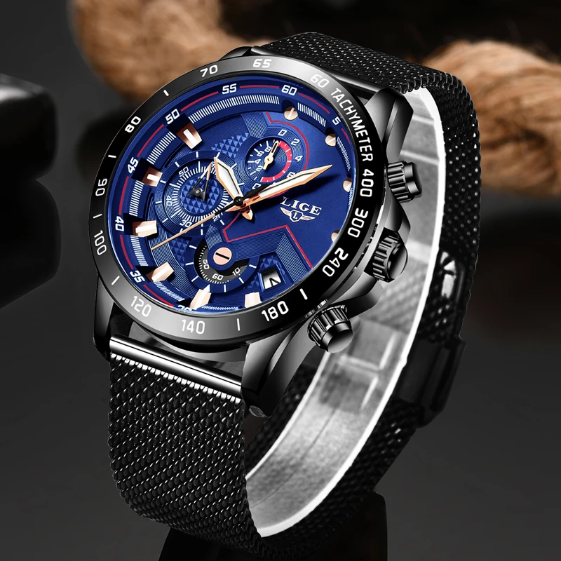 Product Name: Новинка, мужские Модные Повседневные часы s LIGE для мужчин, кварцевые наручные часы с датой, спортивные часы с хронографом и сетчатым ремешко...