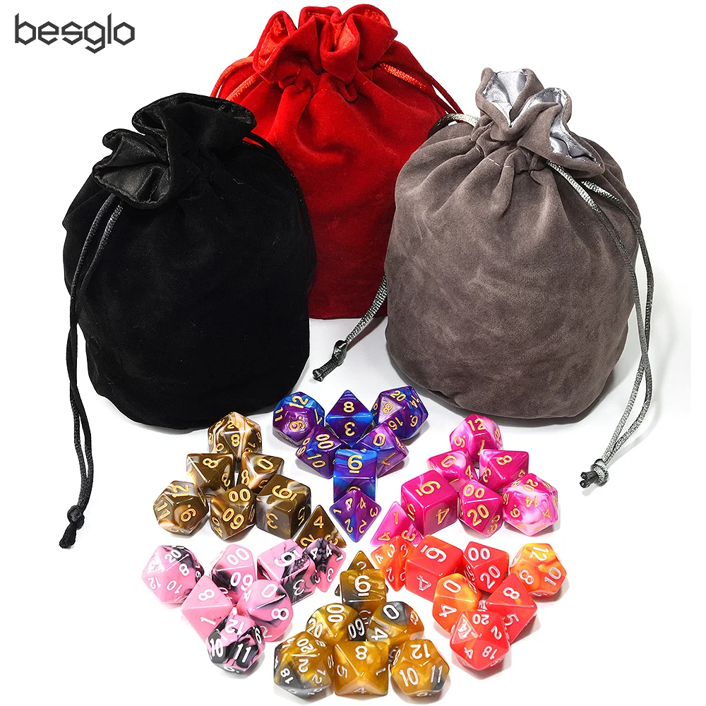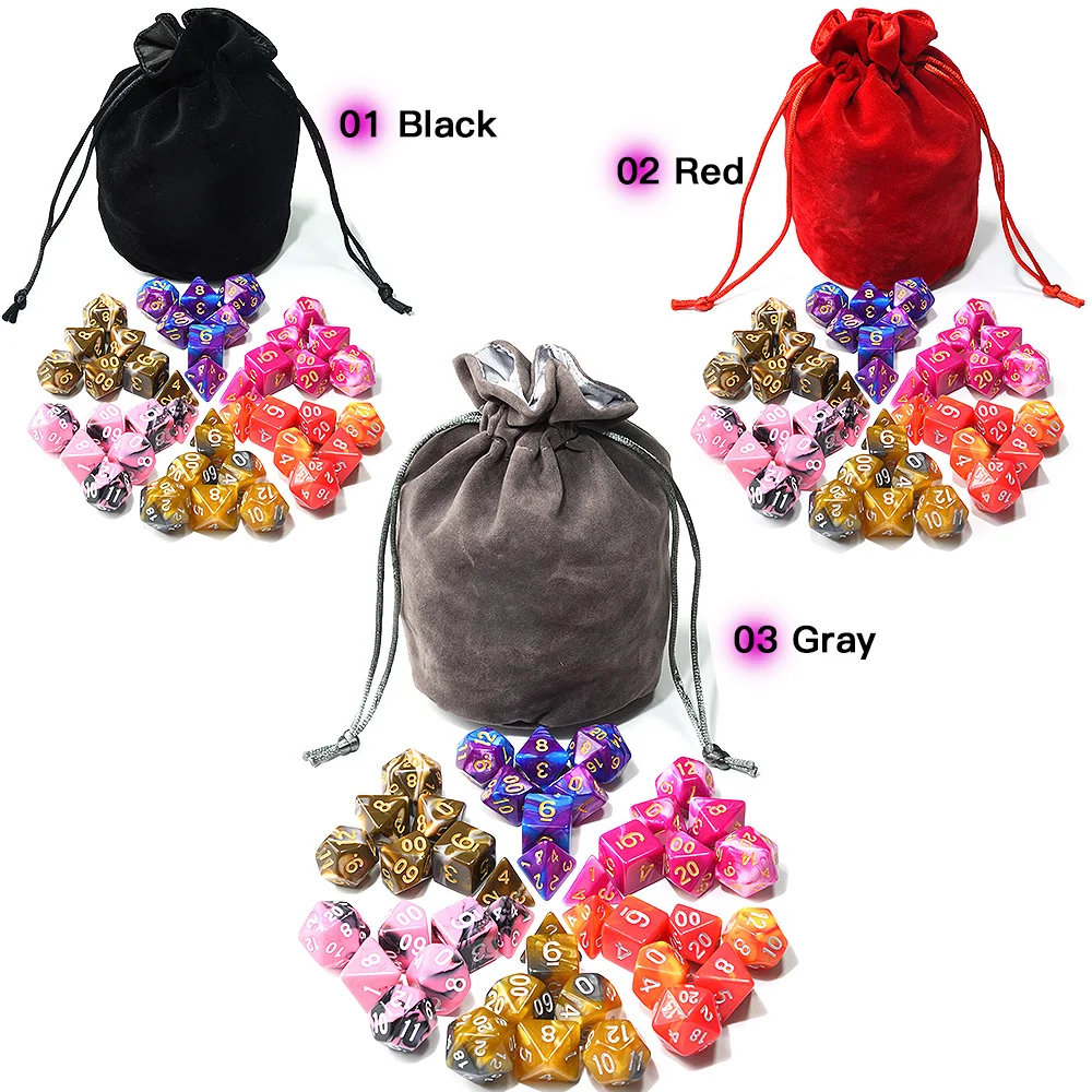 (0% Off) Купить 42 шт. многогранные кости с 1 большой двухслойный атласный Бархатный мешочек для DnD ролевые игры, настольные игры 3 вида цветов ... Цена Дешево