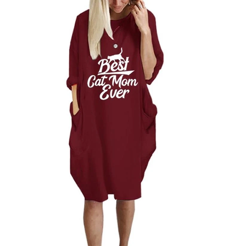 (0% Off) Купить Новое поступление, футболка для женщин, лучший Кот, мама, буквенный принт, карман размера плюс, топы, Harajuku, футболка, забавная, летняя, с откры... Цена Дешево