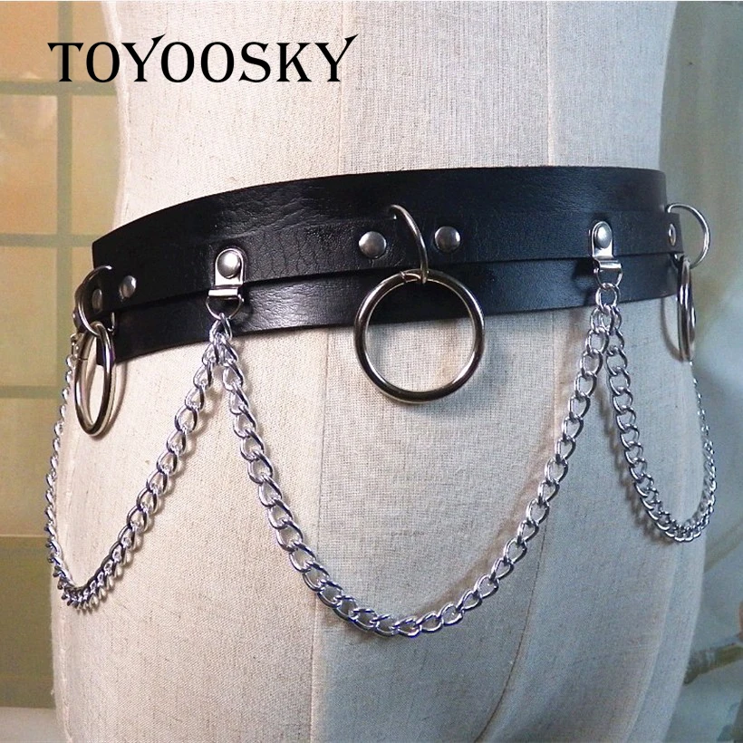 Special Offer Женский ремень с металлическим кольцом, дизайнерский пояс в готическом панк рок стиле, с цепочкой, 2019 Discount 10% Today!