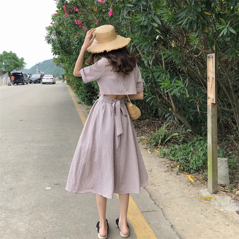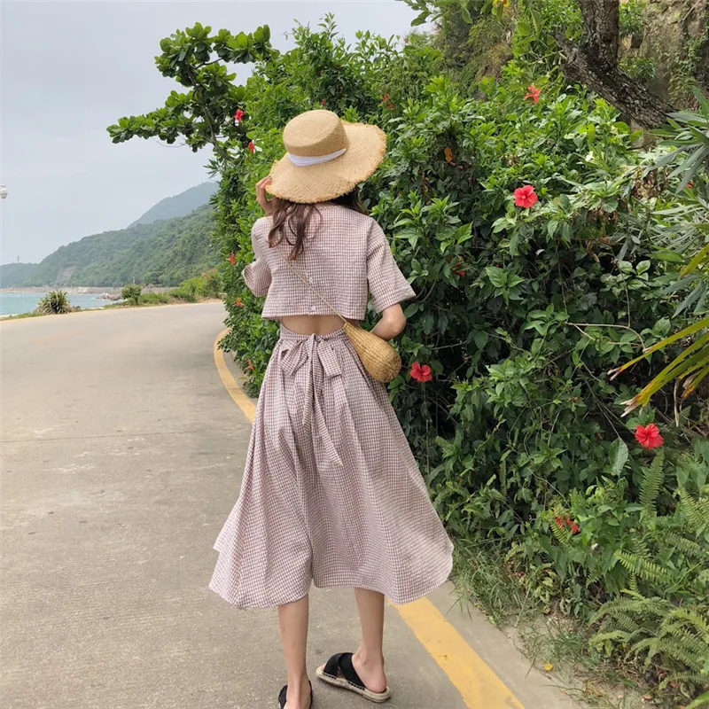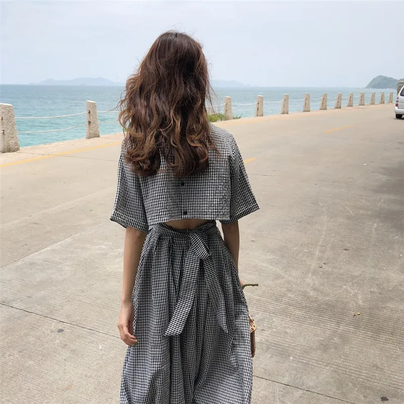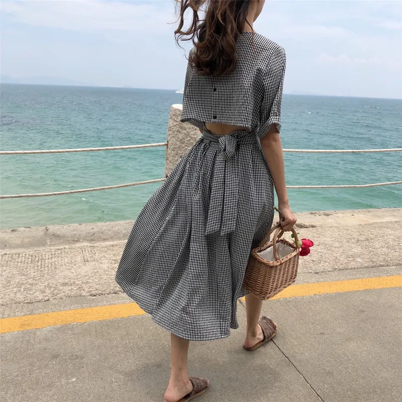Special Offer Женское летнее длинное клетчатое сексуальное платье с открытой спиной, трапециевидный галстук бабочка с поясом, облегающий халат, Femme, на пу... Discount 13% Today!