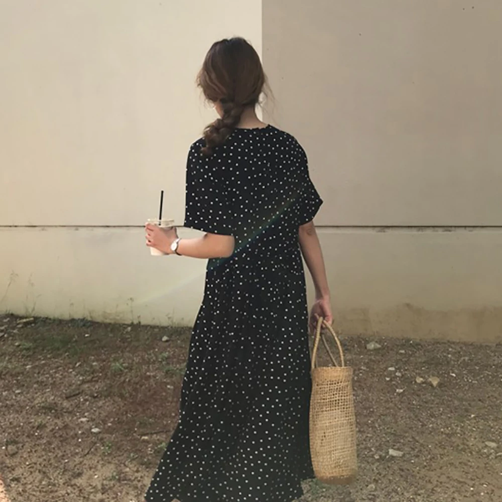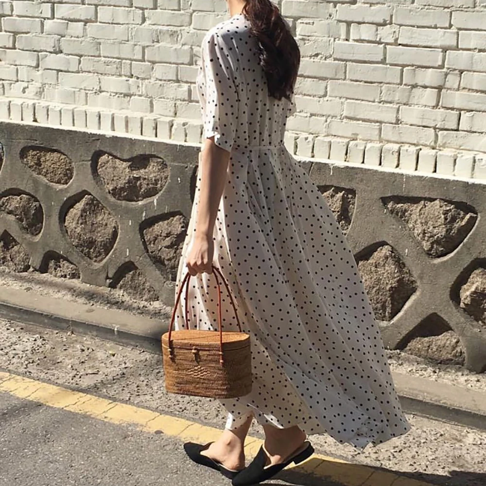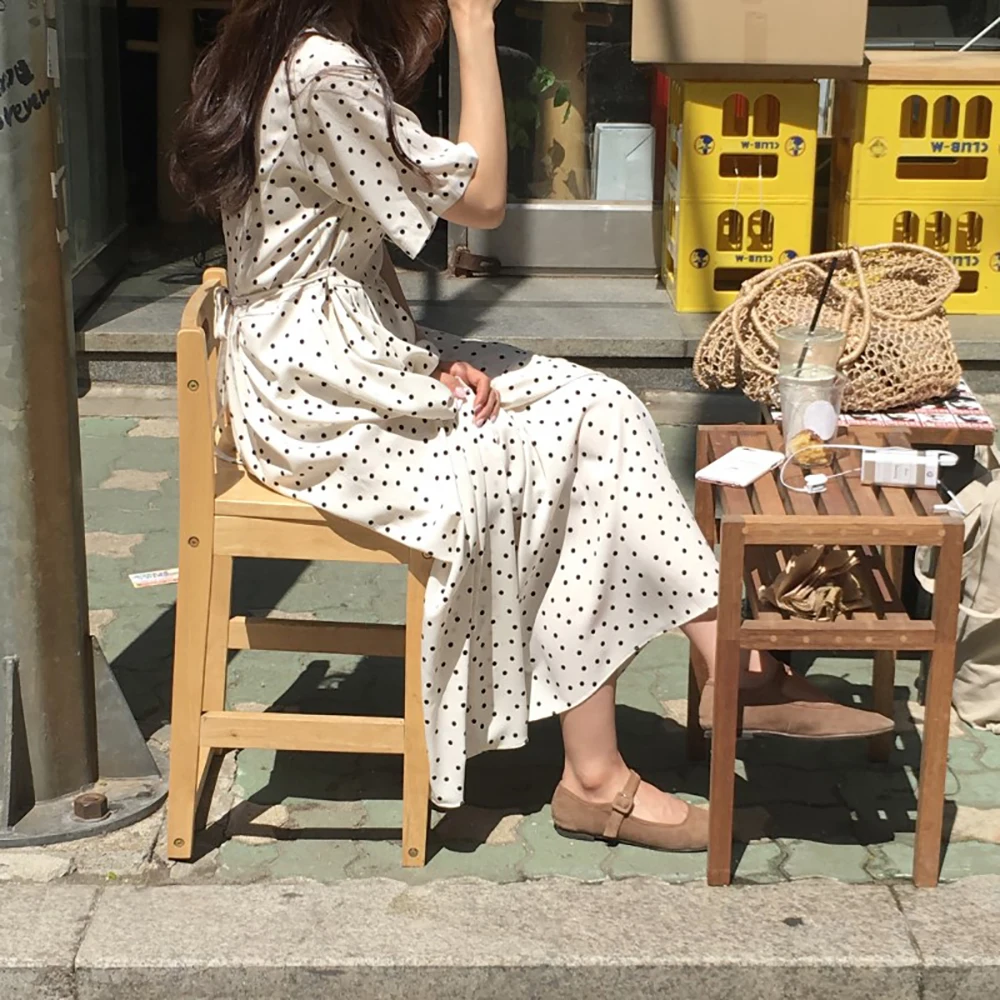 Product Name: Женское летнее облегающее длинное платье в горошек, винтажное платье с поясом, сарафан, халат, женское платье Zomer Jurk