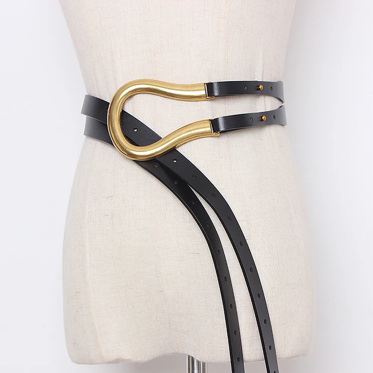 Product Name: Женский черный ремень модный кожаный металлический u образный с большой пряжкой сексуальный подиумный дизайнерский брендовый ремень корот...