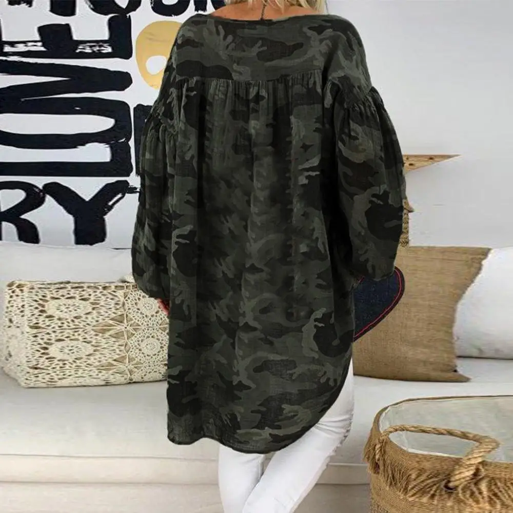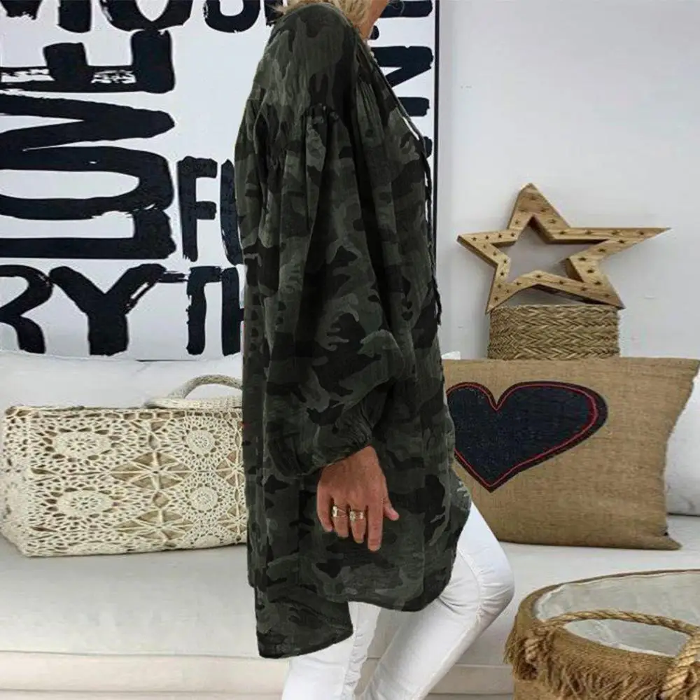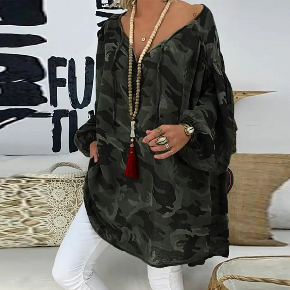 Special Offer Большой размер 5XL женский свободный Камуфляжный пуловер размера плюс с длинным рукавом и v образным вырезом Камуфляжный Топ женский большой... Discount 20% Today!