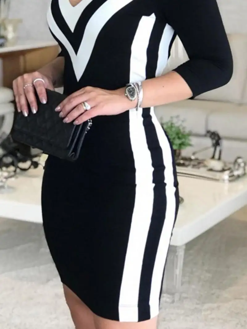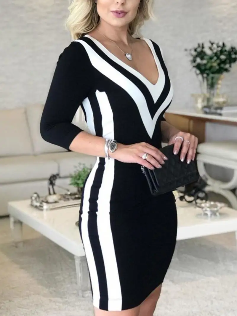 Product Name: Женское облегающее платье в черно белую полоску, с глубоким v образным вырезом, большие размеры, весна 2019