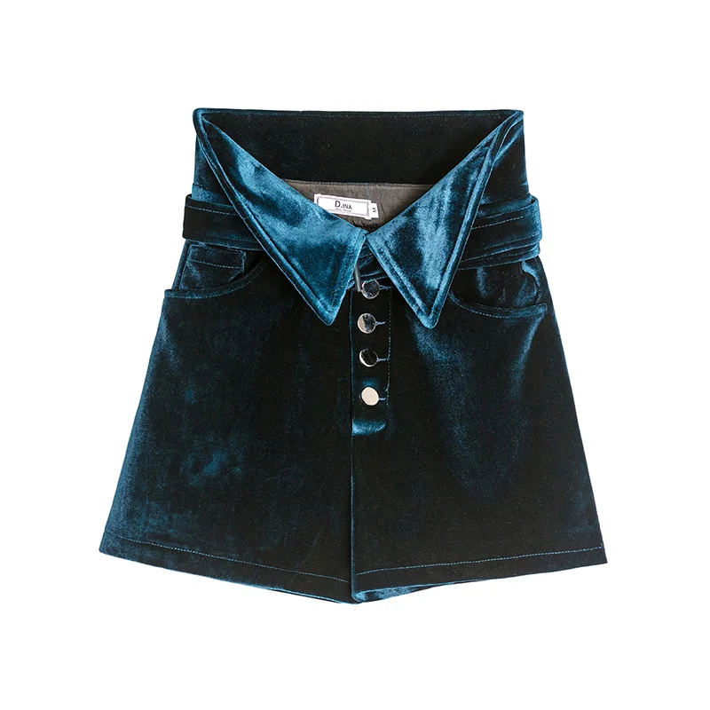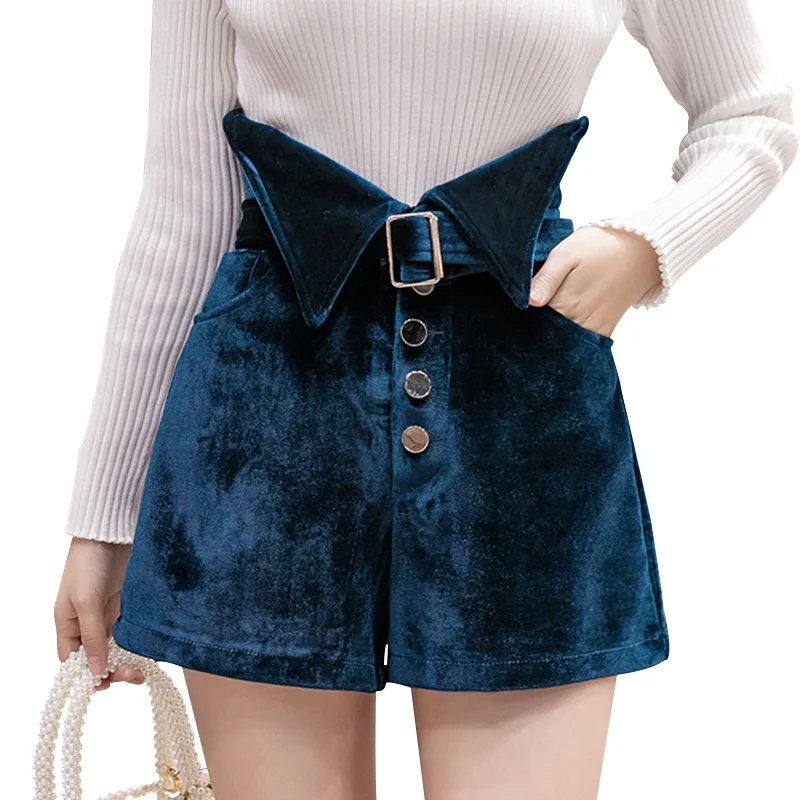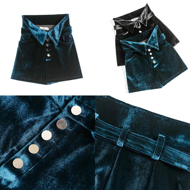 Product Name: Бархатные шорты женские с поясом модные шорты средней длины женские размера плюс кнопки Осень Зима Высокая Талия Короткие Брюки с карманам...
