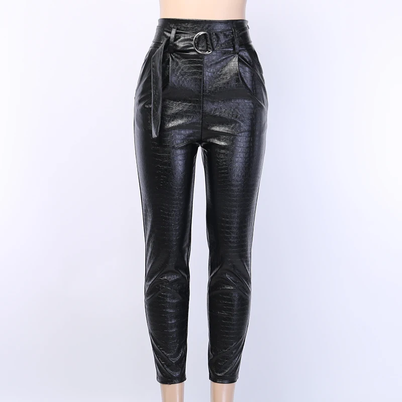 Product Name: InstaHot брюки из искусственной кожи PU Hamer, женские повседневные элегантные черные брюки с высокой талией и поясом, женские Капри, женские осенн...