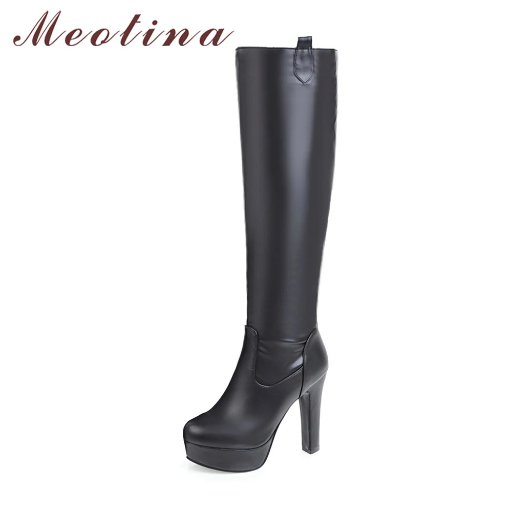 Special Offer Meotina сапоги женские зимние сапоги до колена высокие сапоги на платформе и высоком каблуке пикантная обувь с круглым носком; bottes femme; Цвет Чер... Discount 54% Today!