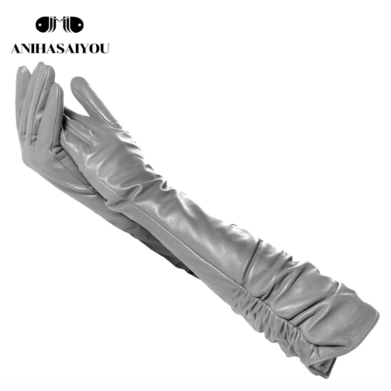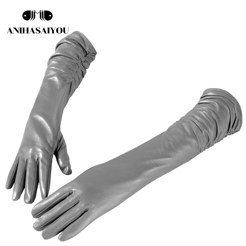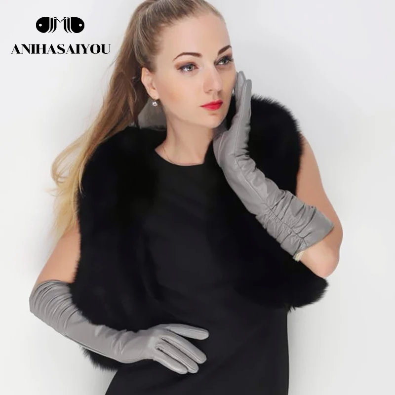 Special Offer Женские длинные кожаные перчатки, женские длинные перчатки из овчины, темно серые зимние длинные кожаные перчатки для женщин, 2019 Discount 59% Today!