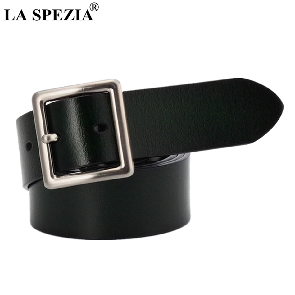 Product Name: LA SPEZIA женские кожаные ремни для джинсов, винтажный квадратный ремень с пряжкой, женский ремень из натуральной воловьей кожи чернильно зелен...