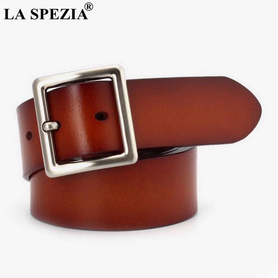 Special Offer LA SPEZIA женские кожаные ремни для джинсов, винтажный квадратный ремень с пряжкой, женский ремень из натуральной воловьей кожи чернильно зелен... Discount 59% Today!