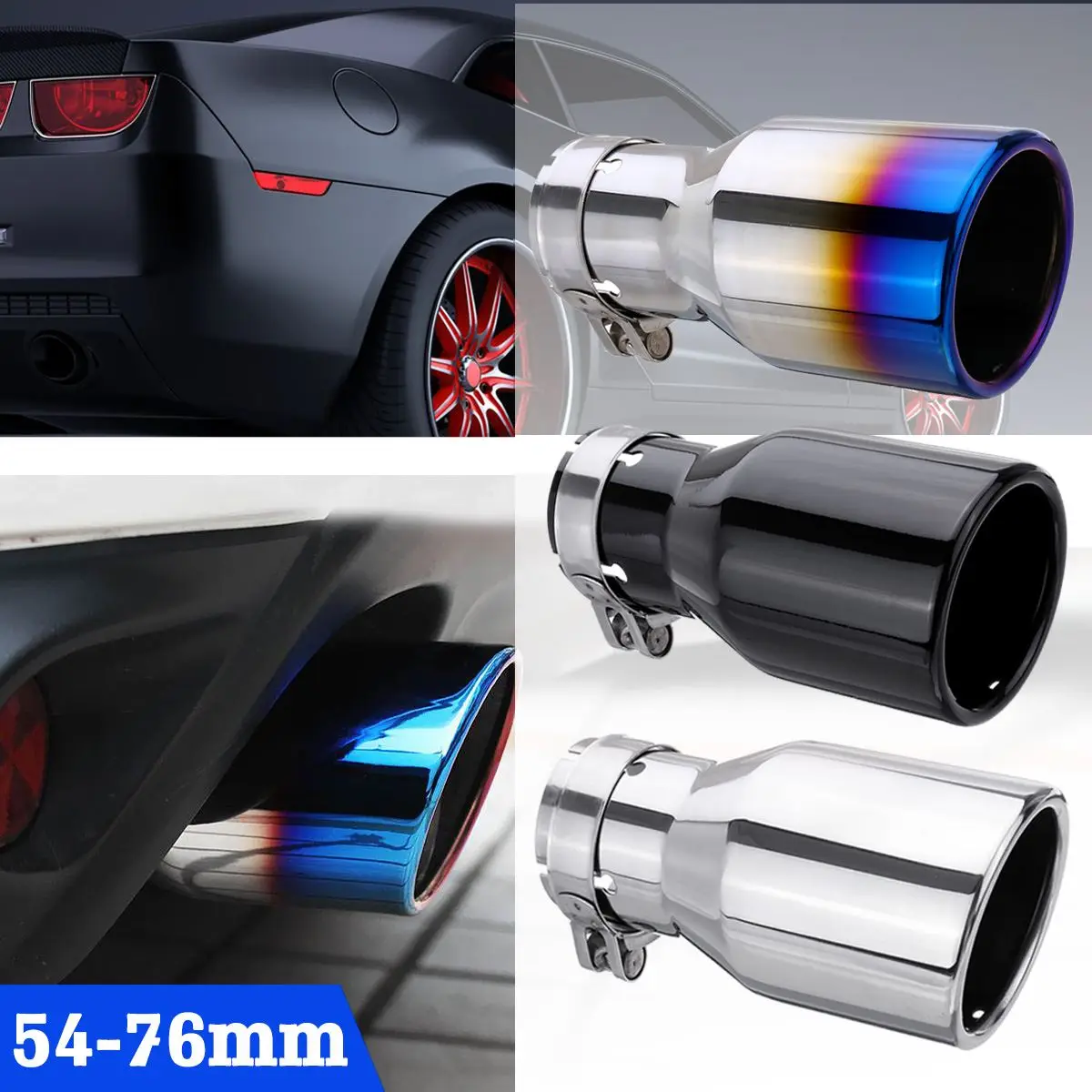 Product Name: Универсальный автомобиль 54 мм 76 мм нержавеющая сталь задняя выхлопная труба Хвост Глушитель наконечник круглый для VW Ford Toyota Honda Mazda Benz BMW и т. ...