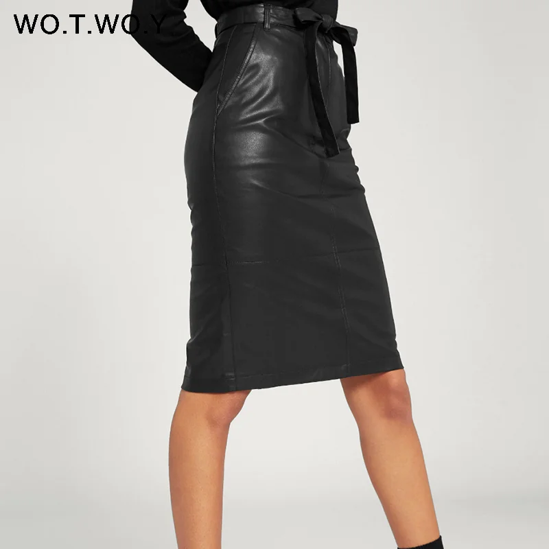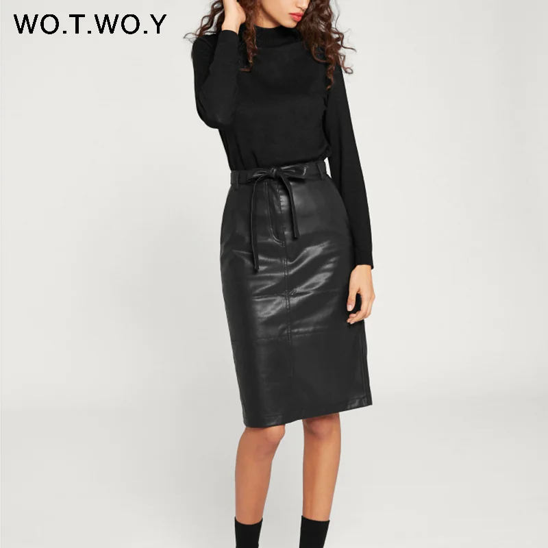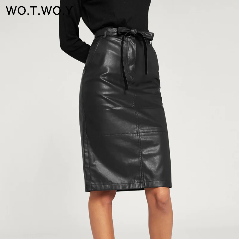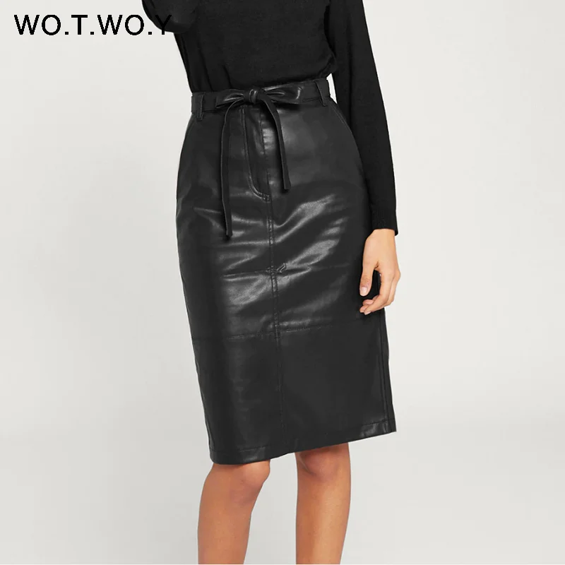 Special Offer Женская офисная юбка из искусственной кожи WOTWOY, осенняя деловая юбка карандаш средней длины с высокой талией 2020, юбка карандаш длиной до кол... Discount 45% Today!